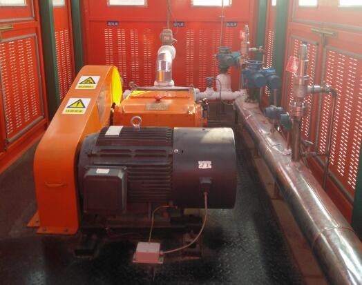 具有多缸活塞式,流量大,压力高的特点,适用于油田CO2注入驱油,其工作目的是将储罐中的液态CO2增压注入油井中,从而增加原油的产量。它的性能稳定,操作简单,维护方便,在良好的安装条件下,泵的启动时间约1—5分钟。
