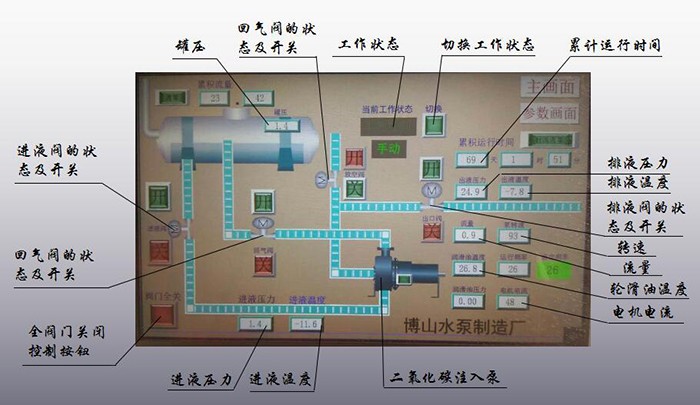 本装置具备进口压力,进口温度,出口压力,出口温度,出口流量的瞬间检测和累计记录功能,紧急停车开关,压力联锁开关,具有超压停泵功能,保护装置,本装置具有全自动控制,具有一键启停功能。本设备还具有润滑油和瓦轴温度保护系统,当油压过低和瓦轴温度过高时自动停车保护,避免造成设备的重大故障。