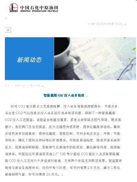 二氧化碳注入装置以其功能集成、结构撬装、智能控制、提前预制、建设快捷、投产迅速、节约占地、节省投资、重复使用和节能环保等特点,保证了质量、速度、安全效益的统一。